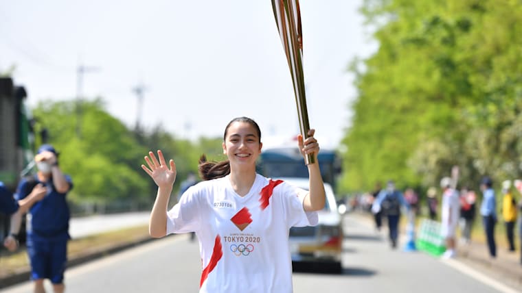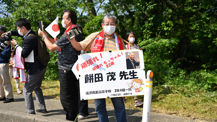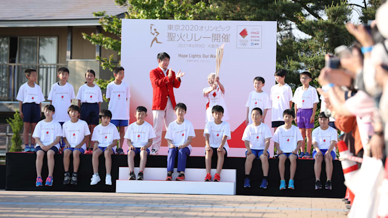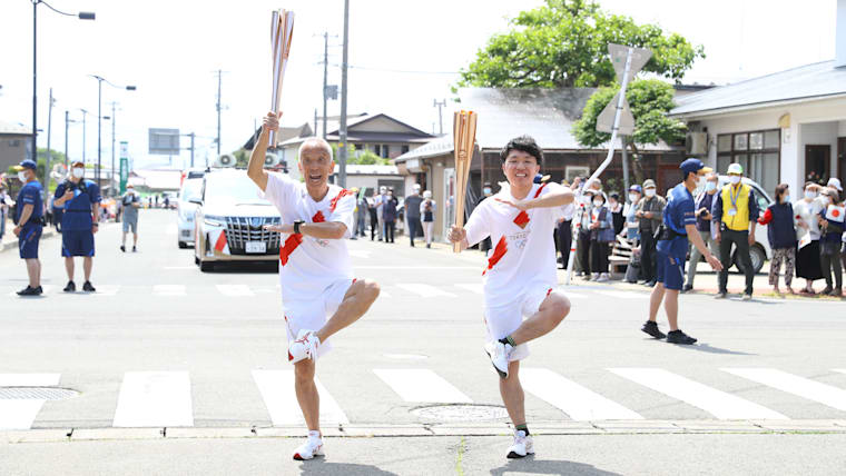 Akita, JAPAN - 9 JUNE, 2021 : The Olympic Torch Relay section 5 in Odate City, Akita prefecture, Japan.