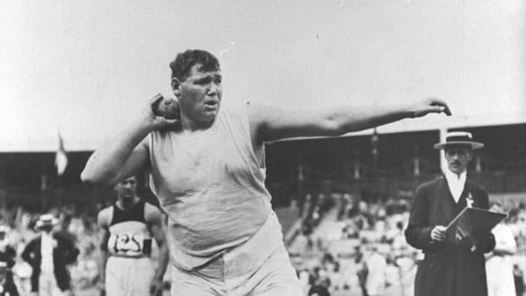Ralph Rose of the USA preparing to throw the shot during the Shot event