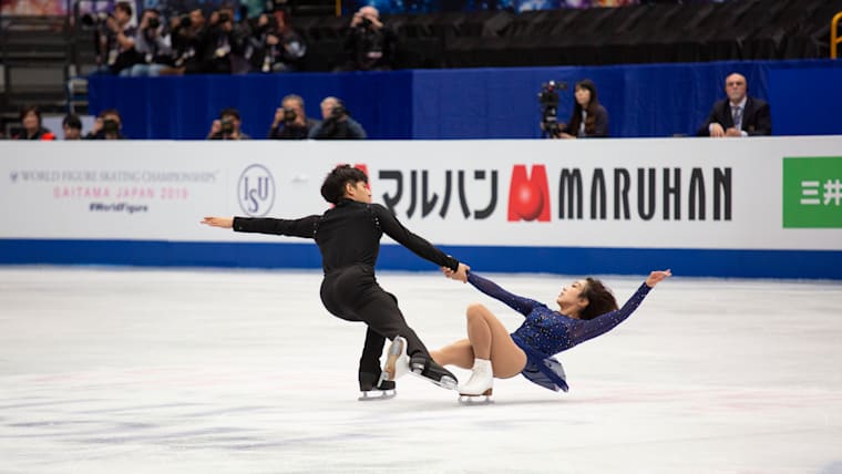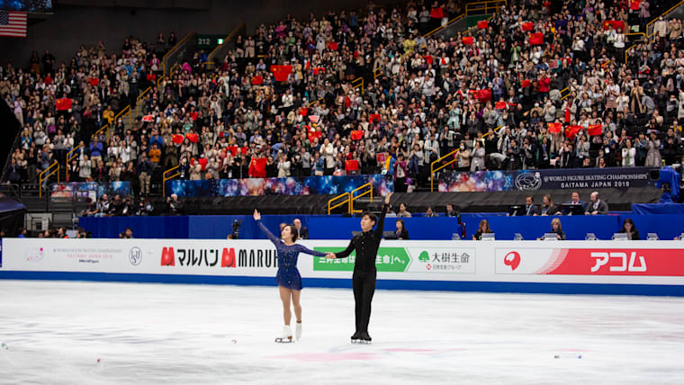 Sui Wenjing and Han Cong during the pairs free skate at the 2019 World Championships in Saitama