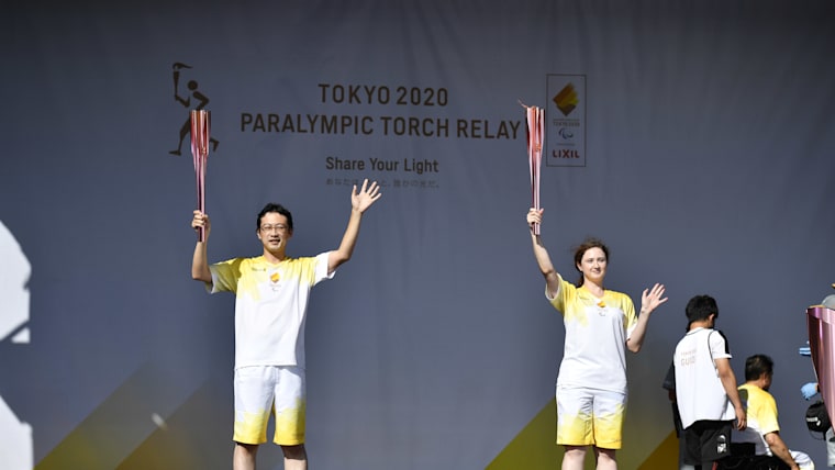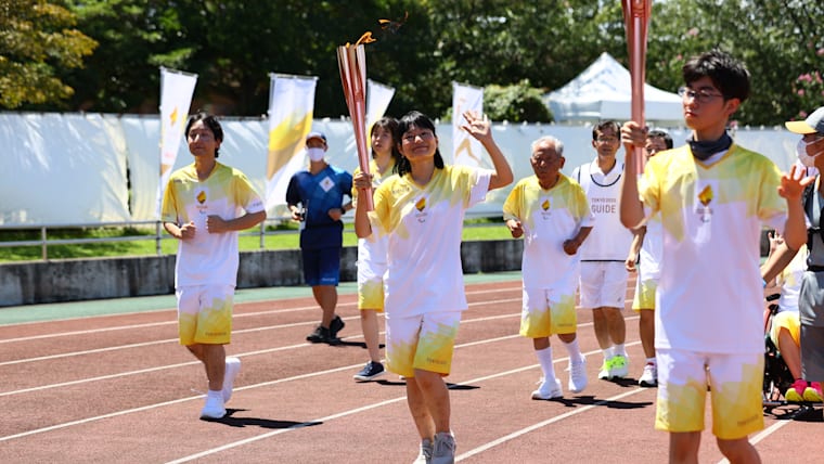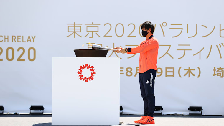 Saitama, JAPAN - 19 August, 2021 : The Flame Gathering in Prefecture of Paralympic Torch Relay Festival in Asaka City, Saitama prefecture, Japan.