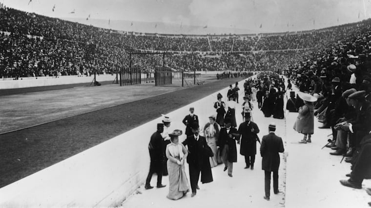 Image of the first modern games in Athens 1896 in the Panathinaikos Stadium (Photo by Lutz Bongarts/Bongarts/Getty Images)