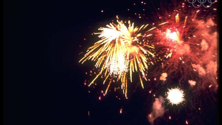 9 AUG 1992: THE FIREWORKS GO OFF OVER THE OLYMPIC STADIUM DURING THE CLOSING CEREMONY OF THE 1992 SUMMER OLYMPICS HELD IN BARCELONA SPAIN.