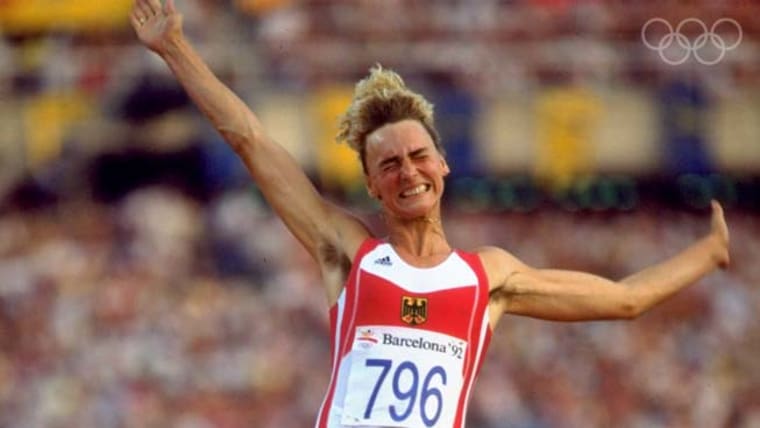 7 Aug 1992: Heike Drechsler of Germany in action during the Long Jump event of the 1992 Olympic Games at the Monjuic Stadium in Barcelona, Spain. Drechsler won the gold medal with a distance of 7.14 metres. \ Mandatory Credit: Mike Powell/Allsport