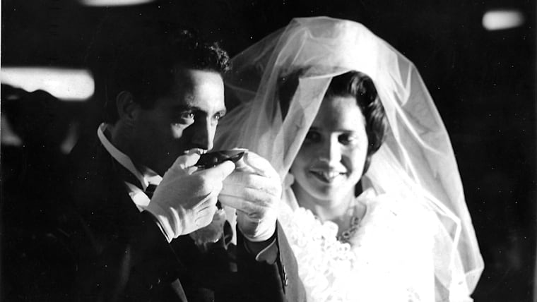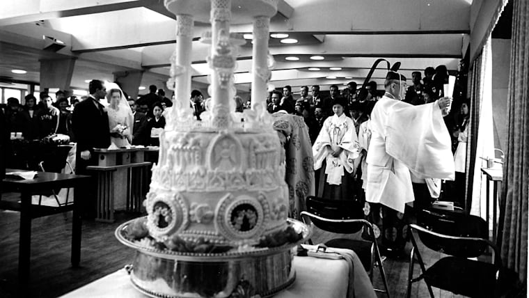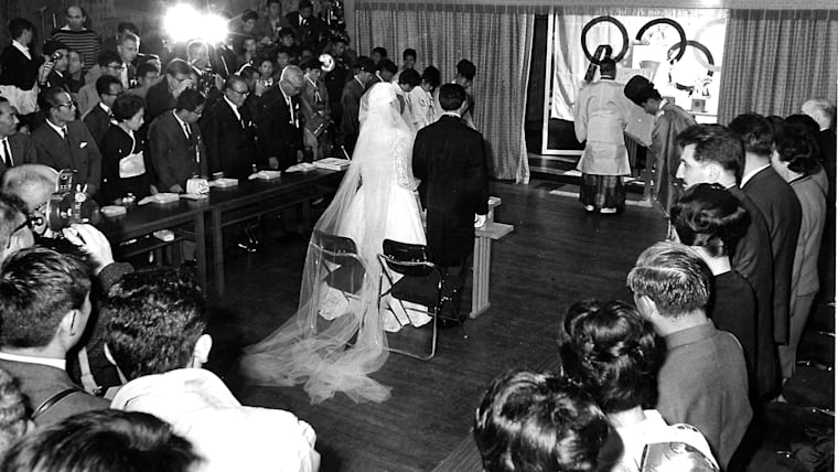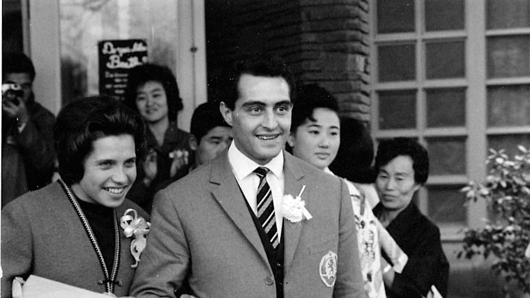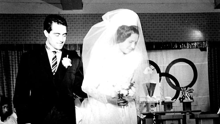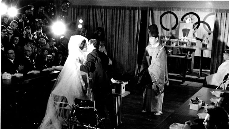Bulgarian athletes Nikola Prodanov and Diana Yorgova, at their wedding ceremony during Tokyo 1964.