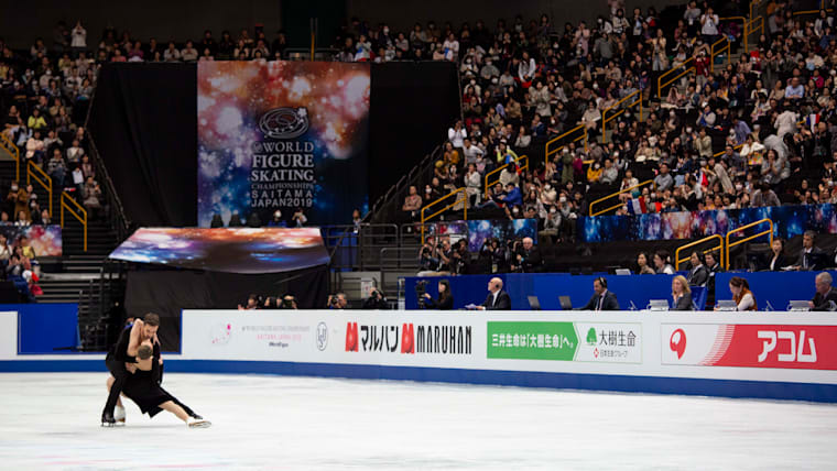 Gabriella Papadakis and Guillaume Cizeron of France perform their rhythm dance in Saitama