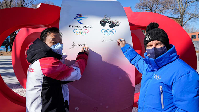 IOC President Thomas Bach during a visit to the Olympic Village and the Olympic Truce Mural, ahead of Beijing 2022 Olympic Winter Games