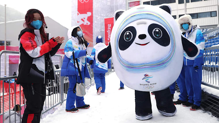 Bing Dwen Dwen walks at National Alpine Ski Centre venue on day nine of the Beijing 2022 Winter Olympic Games