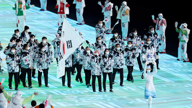 Members of Team Republic of Korea are seen during the Opening Ceremony of the Beijing 2022 Winter Olympics at the Beijing National Stadium on February 04, 2022.