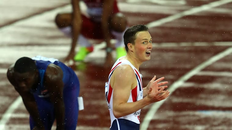 Karsten Warholm reacts to his 400m hurdles gold at the 2017 World Championships in London
