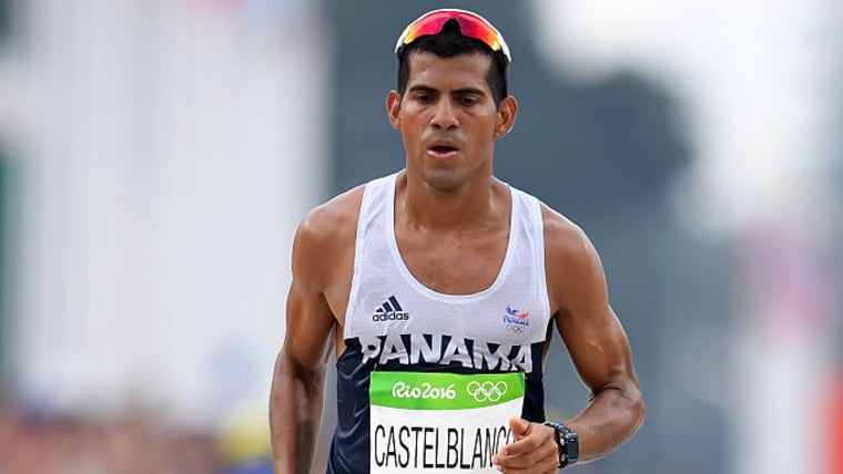 RIO DE JANEIRO, BRAZIL - AUGUST 21: Jorge Castelblanco of Panama limps across the finish line during the Men's Marathon on Day 16 of the Rio 2016 Olympic Games at Sambodromo on August 21, 2016 in Rio de Janeiro, Brazil. (Photo by Matthias Hangst/Getty Images)