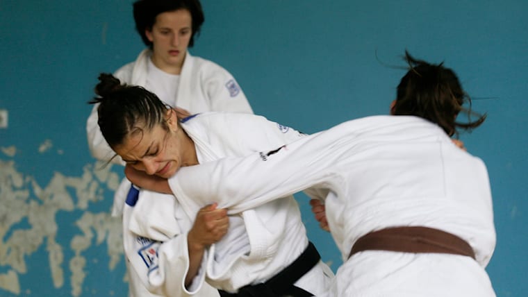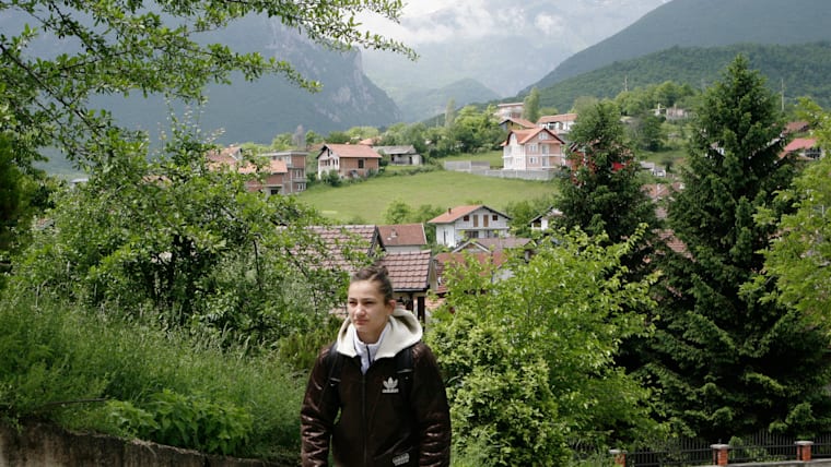 Majlinda Kelmendi prepares for training in her hometown Peja