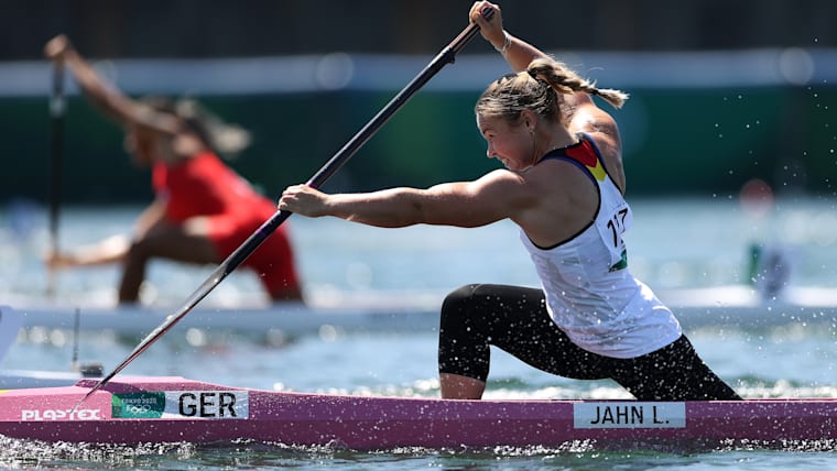 TOKYO, JAPAN - AUGUST 05: Lisa Jahn of Team Germany competes during the Women's Canoe Single 200m Semi-final 1 on day thirteen of the Tokyo 2020 Olympic Games at Sea Forest Waterway on August 05, 2021 in Tokyo, Japan. (Photo by Laurence Griffiths/Getty Images)