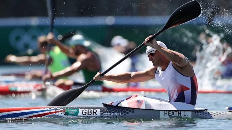 TOKYO, JAPAN - AUGUST 05: Liam Heath of Team Great Britain competes during the Men's Kayak Single 200m Final A on day thirteen of the Tokyo 2020 Olympic Games at Sea Forest Waterway on August 05, 2021 in Tokyo, Japan. (Photo by Laurence Griffiths/Getty Images)