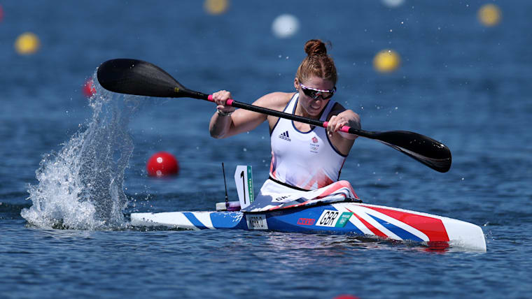 TOKYO, JAPAN - AUGUST 05: Deborah Kerr of Team Great Britain competes during the Women's Kayak Single 500m Semi-final 1 on day thirteen of the Tokyo 2020 Olympic Games at Sea Forest Waterway on August 05, 2021 in Tokyo, Japan. (Photo by Naomi Baker/Getty Images)