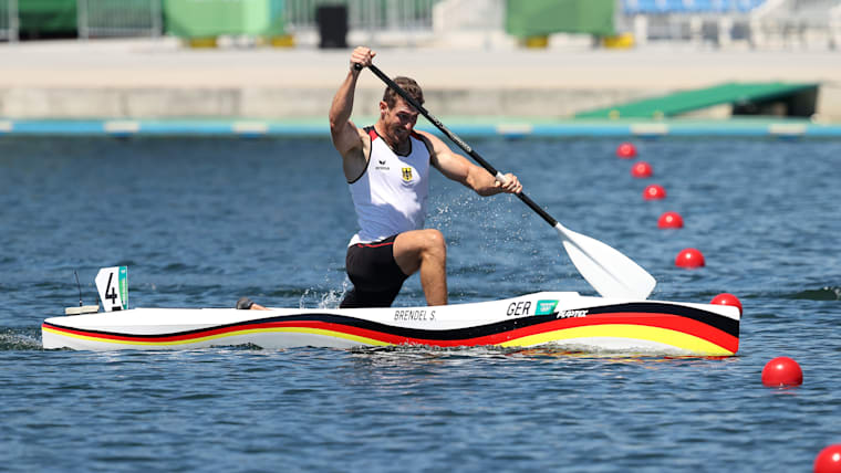 TOKYO, JAPAN - AUGUST 06: Sebastian Brendel of Team Germany competes during the Men's Canoe Single 1000m Heat 3 on day fourteen of the Tokyo 2020 Olympic Games at Sea Forest Waterway on August 06, 2021 in Tokyo, Japan. (Photo by Phil Walter/Getty Images)