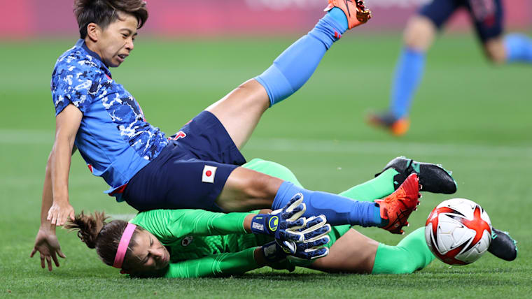 RIFU, MIYAGI, JAPAN - JULY 21: Lineth Beerensteyn #18 of Team Netherlands scores their side's ninth goal past Hazel Nali #16 of Team Zambia during the Women's First Round Group F match between Zambia and Netherlands during the Tokyo 2020 Olympic Games at Miyagi Stadium on July 21, 2021 in Rifu, Miyagi, Japan. (Photo by Koki Nagahama/Getty Images)