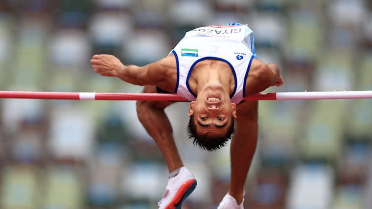 TOKYO, JAPAN - SEPTEMBER 03: Temurbek Giyazov of Team Uzbekistan competes in the Men's High Jump - T64 final on day 10 of the Tokyo 2020 Paralympic Games at Ariake Tennis Park on September 03, 2021 in Tokyo, Japan. (Photo by Buda Mendes/Getty Images)