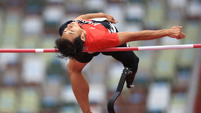 TOKYO, JAPAN - SEPTEMBER 03: Toru Suzuki of Team Japan competes in the Men's High Jump - T64 final on day 10 of the Tokyo 2020 Paralympic Games at Ariake Tennis Park on September 03, 2021 in Tokyo, Japan. (Photo by Buda Mendes/Getty Images)