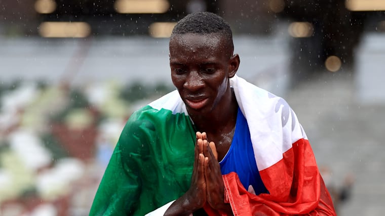 TOKYO, JAPAN - SEPTEMBER 03: Ndiaga Dieng of Teambcelebrates winning the gold medal after competing in the Men's 1500m - T20 Final on day 10 of the Tokyo 2020 Paralympic Games at Olympic Stadium on September 03, 2021 in Tokyo, Japan. (Photo by Buda Mendes/Getty Images)