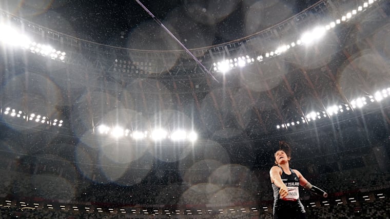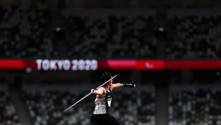 TOKYO, JAPAN - SEPTEMBER 03: Holly Robinson of Team New Zealand throws to with the gold medal as she competes in the Women's Javelin - F45 on day 10 of the Tokyo 2020 Paralympic Games at the Olympic Stadium on September 03, 2021 in Tokyo, Japan. (Photo by Dean Mouhtaropoulos/Getty Images for New Zealand Paralympic Committee)