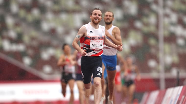 TOKYO, JAPAN - SEPTEMBER 03: Owen Miller of Team Great Britain crosses the finish line to win the gold medal in the Men's 1500m - T20 Final on day 10 of the Tokyo 2020 Paralympic Games at Olympic Stadium on September 03, 2021 in Tokyo, Japan. (Photo by Lintao Zhang/Getty Images)