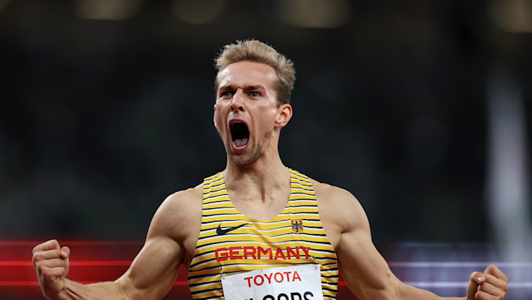 TOKYO, JAPAN - SEPTEMBER 03: Johannes Floors of Team Germany celebrates winning the gold medal after competing in the Men's 400m - T62 Final on day 10 of the Tokyo 2020 Paralympic Games at the Olympic Stadium on September 03, 2021 in Tokyo, Japan. (Photo by Buda Mendes/Getty Images)