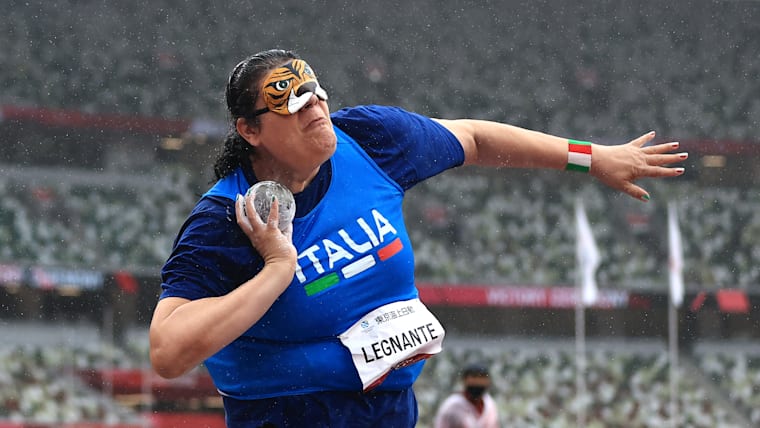 TOKYO, JAPAN - SEPTEMBER 03: Assunta Legnante of Team Italy competes in the Women's Shot Put - F12 Final on day 10 of the Tokyo 2020 Paralympic Games at Olympic Stadium on September 03, 2021 in Tokyo, Japan. (Photo by Buda Mendes/Getty Images)