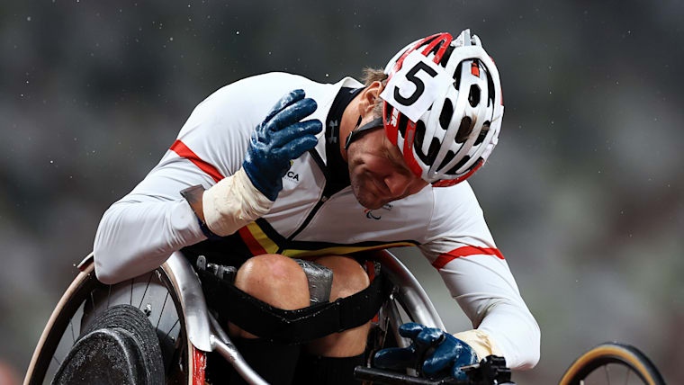 TOKYO, JAPAN - SEPTEMBER 03: Peter Genyn of Team Belgium reacts winning the gold medal after competing in the Men's 100m - T51 final on day 10 of the Tokyo 2020 Paralympic Games at the Olympic Stadium on September 03, 2021 in Tokyo, Japan. (Photo by Buda Mendes/Getty Images)