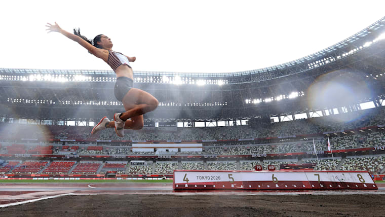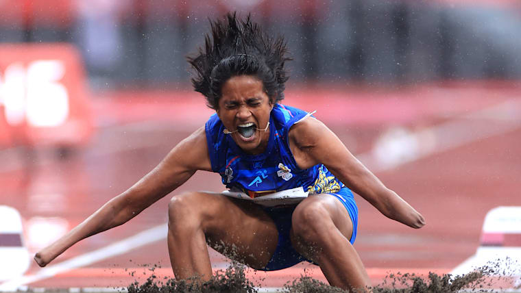 TOKYO, JAPAN - SEPTEMBER 03: Kumudu P. Dissanayake Mudiyanselage of Team Sri Lanka competes in the Women's Long Jump - T47 on day 10 of the Tokyo 2020 Paralympic Games at Olympic Stadium on September 03, 2021 in Tokyo, Japan. (Photo by Carmen Mandato/Getty Images)