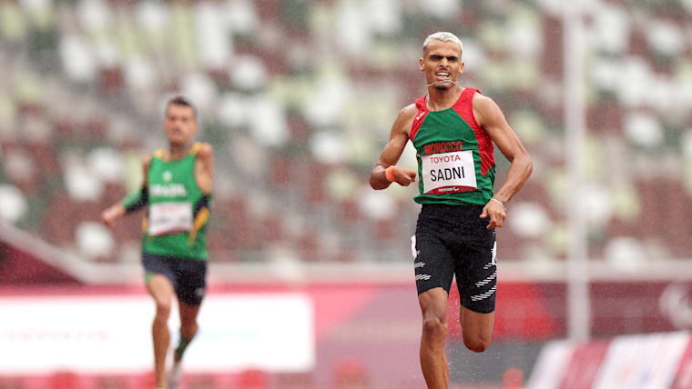 TOKYO, JAPAN - SEPTEMBER 03: Ayoub Sadni of Team Morocco competes in the Men's 400m - T47 heat on day 10 of the Tokyo 2020 Paralympic Games at Olympic Stadium on September 03, 2021 in Tokyo, Japan. (Photo by Lintao Zhang/Getty Images)