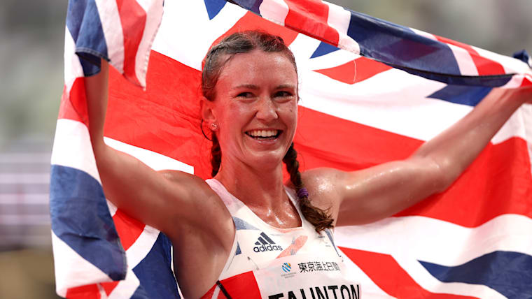 TOKYO, JAPAN - SEPTEMBER 03: Bronze medalist Hannah Taunton of Team Great Britain poses after competing in the Women's 1500m - T20 Final on day 10 of the Tokyo 2020 Paralympic Games at Olympic Stadium on September 03, 2021 in Tokyo, Japan. (Photo by Lintao Zhang/Getty Images)