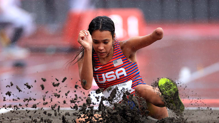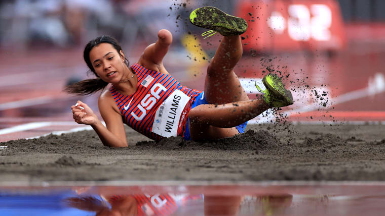 TOKYO, JAPAN - SEPTEMBER 03: Taleah Williams of Team United States competes in the Women's Long Jump - T45 Final on day 10 of the Tokyo 2020 Paralympic Games at Olympic Stadium on September 03, 2021 in Tokyo, Japan. (Photo by Carmen Mandato/Getty Images)
