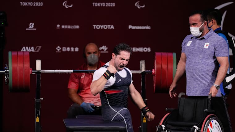 TOKYO, JAPAN - AUGUST 27: Amir Jafari Arangeh of Team Iran reacts during the men's -65 kg final on day 3 of the Tokyo 2020 Paralympic Games at on August 27, 2021 in Tokyo, Japan. (Photo by Christopher Jue/Getty Images for International Paralympic Committee)