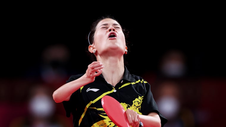 TOKYO, JAPAN - AUGUST 30: Guiyan Xiong of Team China serves during the Women's Table Tennis Singles - Class 9 Final Match of the Tokyo 2020 Paralympic Games at Tokyo Metropolitan Gymnasium on August 30, 2021 in Tokyo, Japan. (Photo by Buda Mendes/Getty Images)
