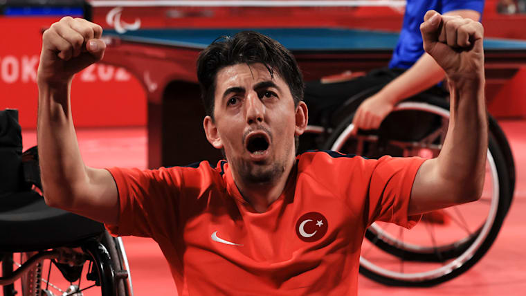 TOKYO, JAPAN - AUGUST 30: Abdullah Ozturk of Team Turkey celebrates winning the Gold medal after the Men's Table Tennis Singles - Class 4 Final of the Tokyo 2020 Paralympic Games at Tokyo Metropolitan Gymnasium on August 30, 2021 in Tokyo, Japan. (Photo by Buda Mendes/Getty Images)