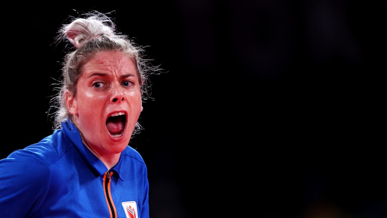 TOKYO, JAPAN - AUGUST 30: Kelly van Zon of Team Netherlands celebrates a point during the Women's Singles C7 Final on day 6 of the Tokyo 2020 Paralympic Games at Tokyo Metropolitan Gymnasium on August 30, 2021 in Tokyo, Japan. (Photo by Naomi Baker/Getty Images)