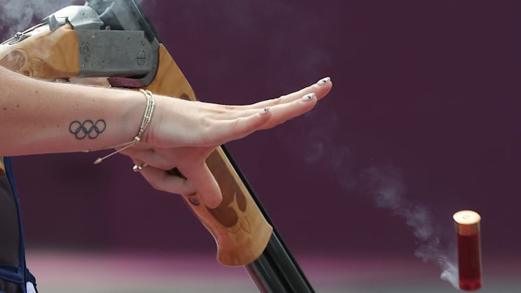 ASAKA, JAPAN - JULY 29: Zuzana Rehak Stefecekova of Team Slovakia competes during the Trap Women's Finals on day six of the Tokyo 2020 Olympic Games at Asaka Shooting Range on July 29, 2021 in Asaka, Saitama, Japan. (Photo by Kevin C. Cox/Getty Images)