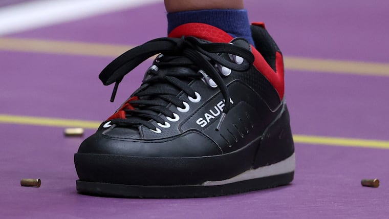 ASAKA, JAPAN - JULY 30: The shoe of Gold Medalist Vitalina Batsarashkina with empty bullet shells in 25m Pistol Women's Finals on day seven of the Tokyo 2020 Olympic Games at Asaka Shooting Range on July 30, 2021 in Asaka, Saitama, Japan. (Photo by Kevin C. Cox/Getty Images)
