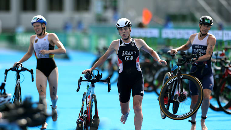 TOKYO, JAPAN - JULY 31: Jessica Learmonth of Team Great Britain is seen in the transition area during the Mixed Relay Triathlon on day eight of the Tokyo 2020 Olympic Games at Odaiba Marine Park on July 31, 2021 in Tokyo, Japan. (Photo by Leon Neal/Getty Images)