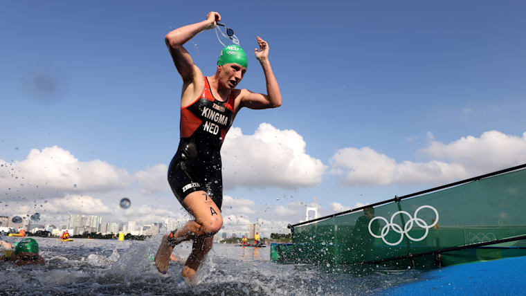 TOKYO, JAPAN - JULY 31: Maya Kingma of Team Netherlands competes in the Mixed Relay Triathlon on day eight of the Tokyo 2020 Olympic Games at Odaiba Marine Park on July 31, 2021 in Tokyo, Japan. (Photo by Jamie Squire/Getty Images)