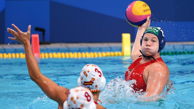 TOKYO, JAPAN - AUGUST 05: h12during the Women's Semifinal match between Spain and Hungary on day thirteen of the Tokyo 2020 Olympic Games at Tatsumi Water Polo Centre on August 05, 2021 in Tokyo, Japan. (Photo by Buda Mendes/Getty Images)