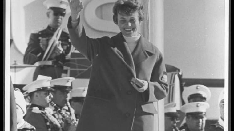 Portrait of American figure skater and Olympic gold medalist Carol Heiss Jenkins, seated in an ice rink, 1960s. (Photo by Hulton Archive/Getty Images)