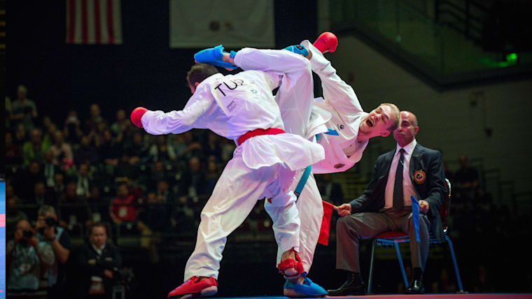Douglas Brose (BRA) performs one of his signature moves at the 2016 Karate 1-Premier League Rabat