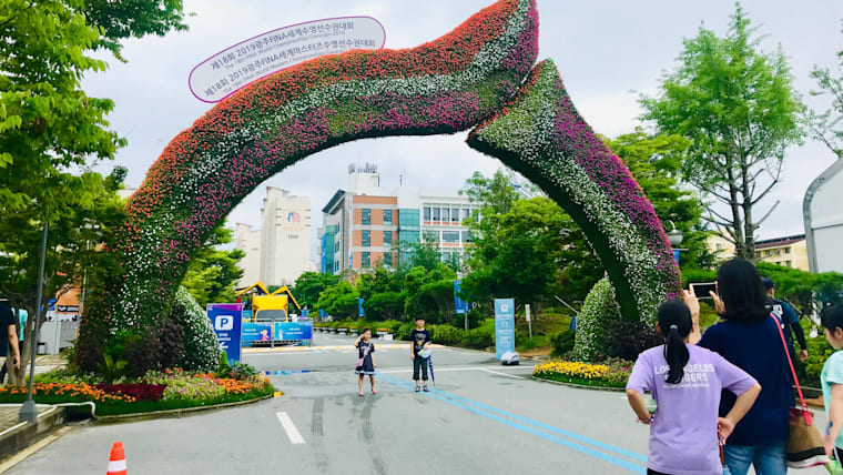 The entrance to the food village, next to Nambu University aquatics and water polo arenas