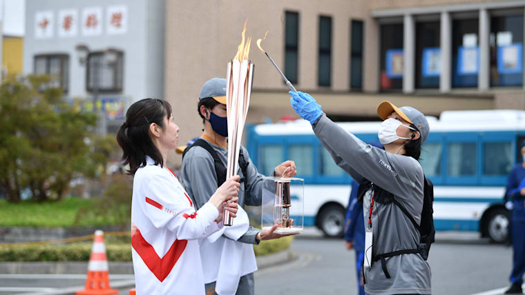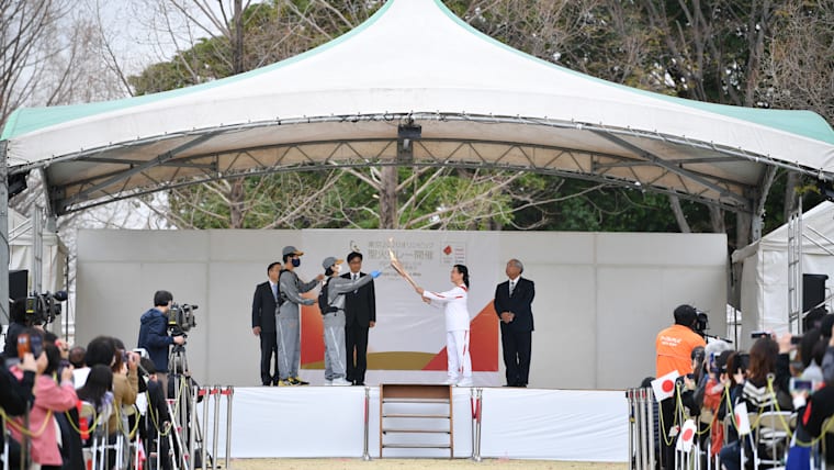 Gunma, JAPAN - 30 March 2021 : The Olympic Torch Relay section 1 in Tatebayashi City, Gunma prefecture, Japan.