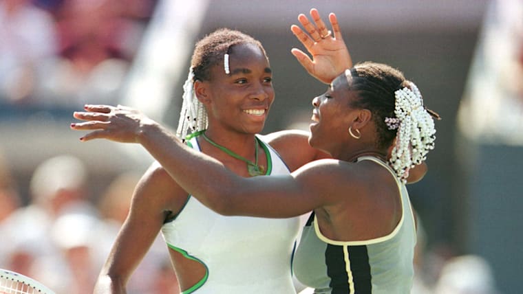 1999年,小威在获胜后和姐姐大威相拥庆祝