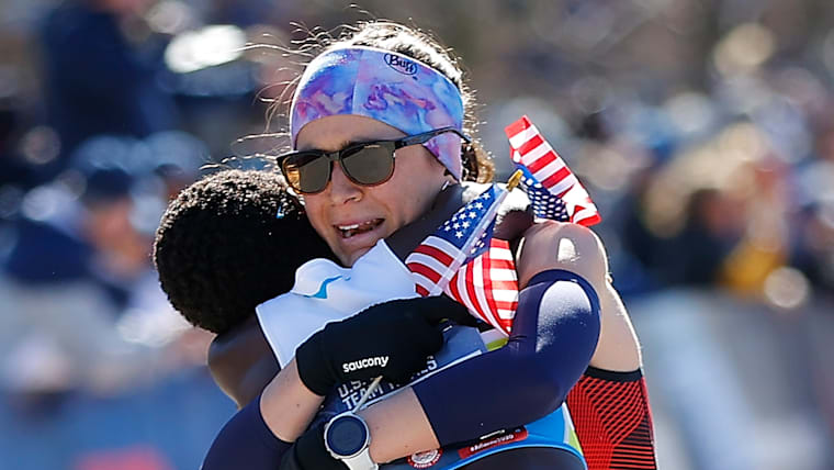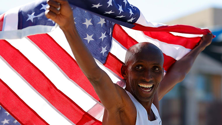 阿卜迪·阿卜迪拉曼在美国奥运马拉松选拔赛男子比赛中获得第三名的瞬间